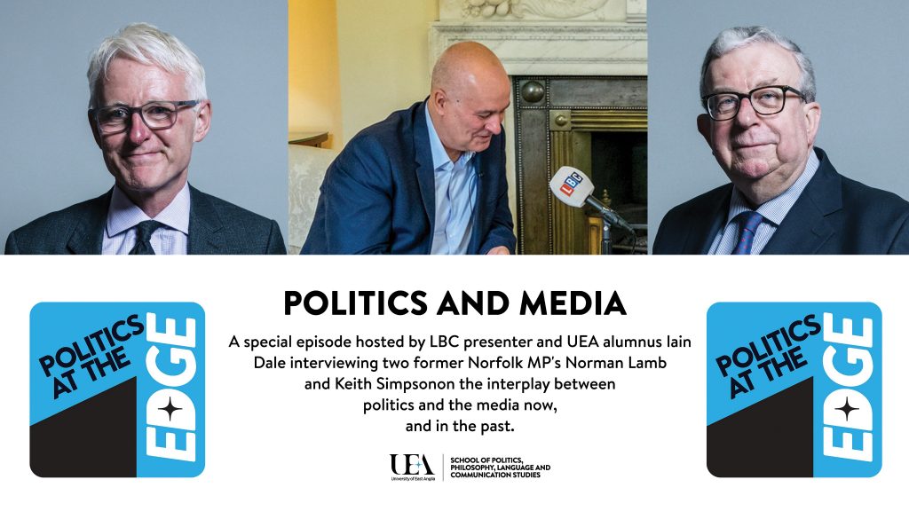 Politics at the Edge Politics at the Edge Podcasts UncategorizedPolitics and the Media with Iain Dale Mar 9, 2020 AdminComment on Politics and the Media with Iain Dale A special episode hosted by LBC presenter and UEA alumnus Iain Dale interviewing two former