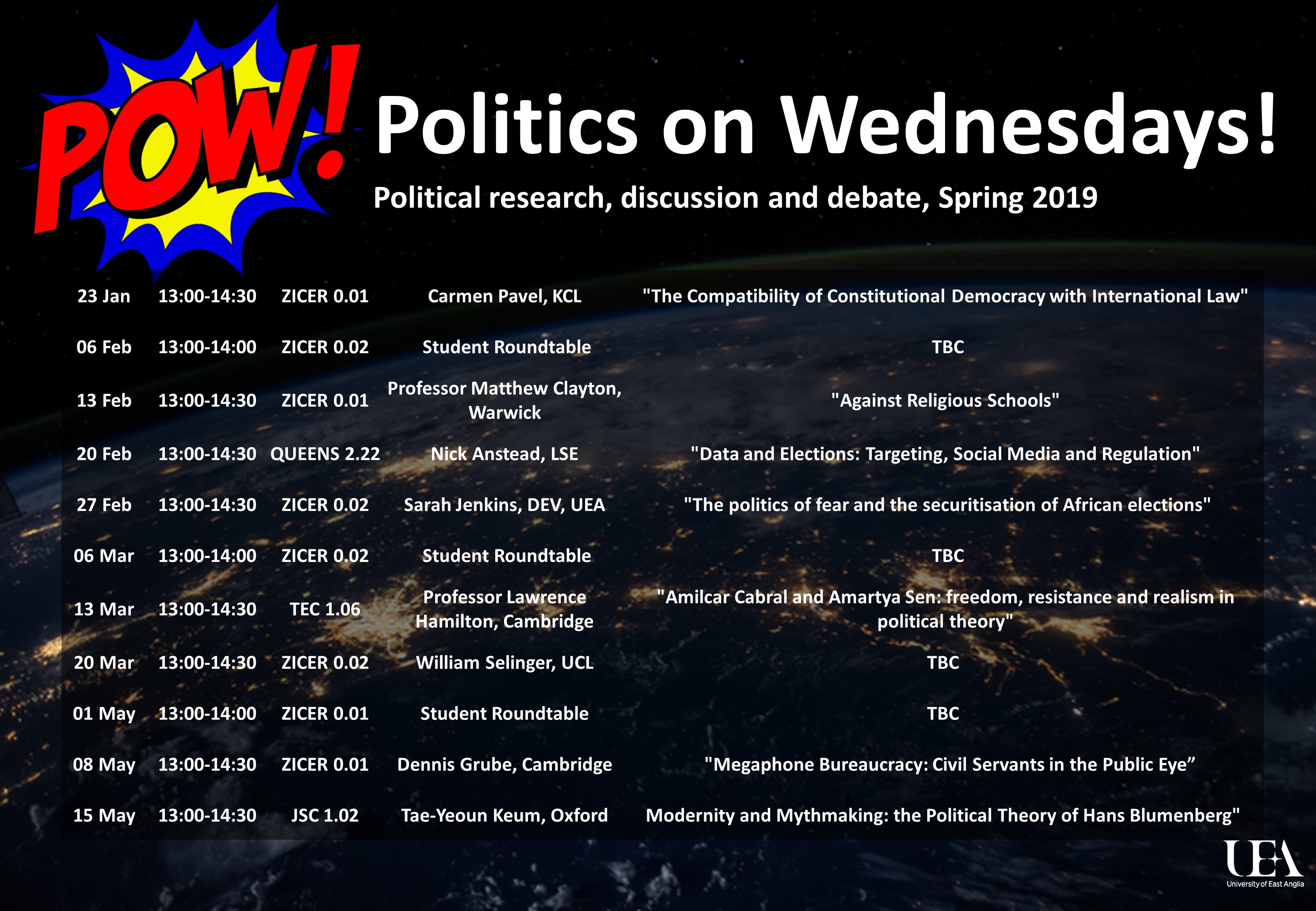 A new seminar series begin this week at the University of East Anglia, where we will be speaking about politics on the big issues.