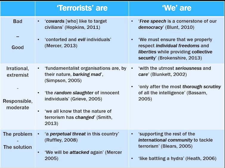 Framing these groups and their violence in this way doesn’t simply represent or depict them as an evil, irrational, and uncivilised. It constructs them as such in way that works to confirm a sense of Britain as a good, rational, and civilised space – everything that the terrorists are not.